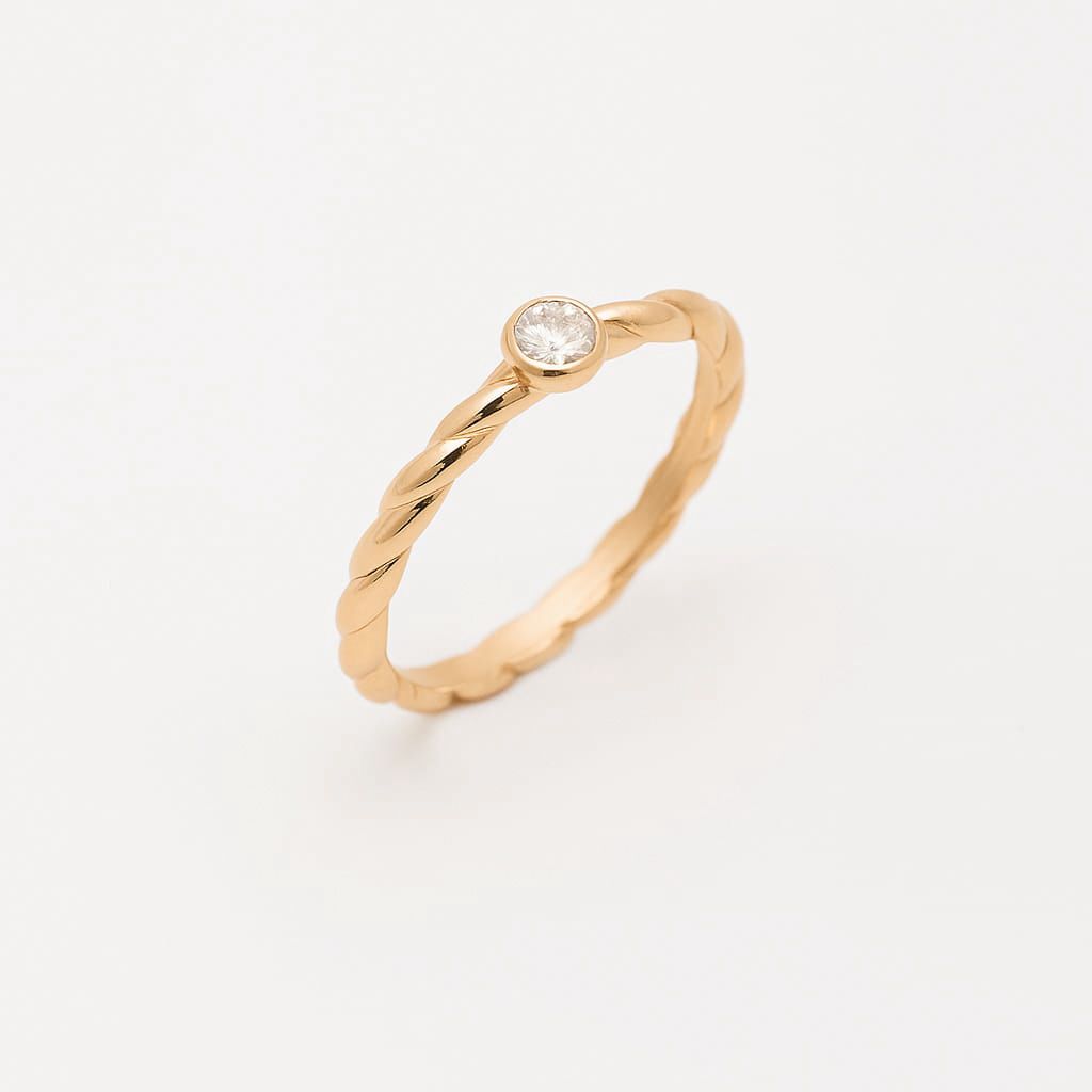 Nosso Anel Solitário Isabella é feito em Ouro 18k e diamante 10 pontos central.