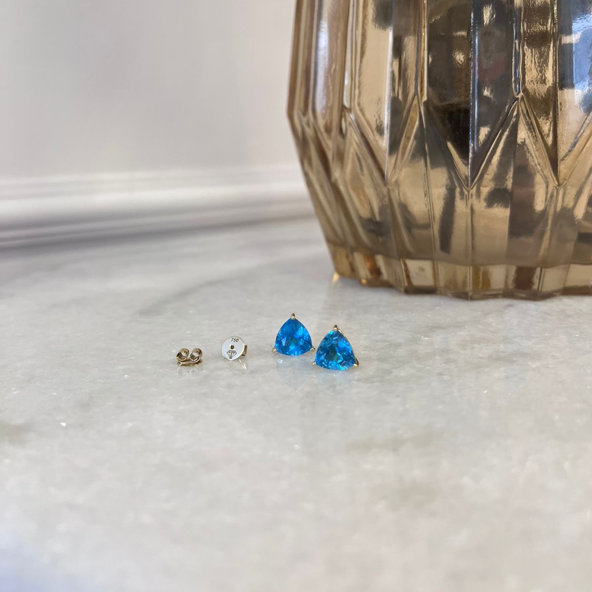 Nosso Brinco Manuela é todo feito em ouro 18k e topázio swiss.