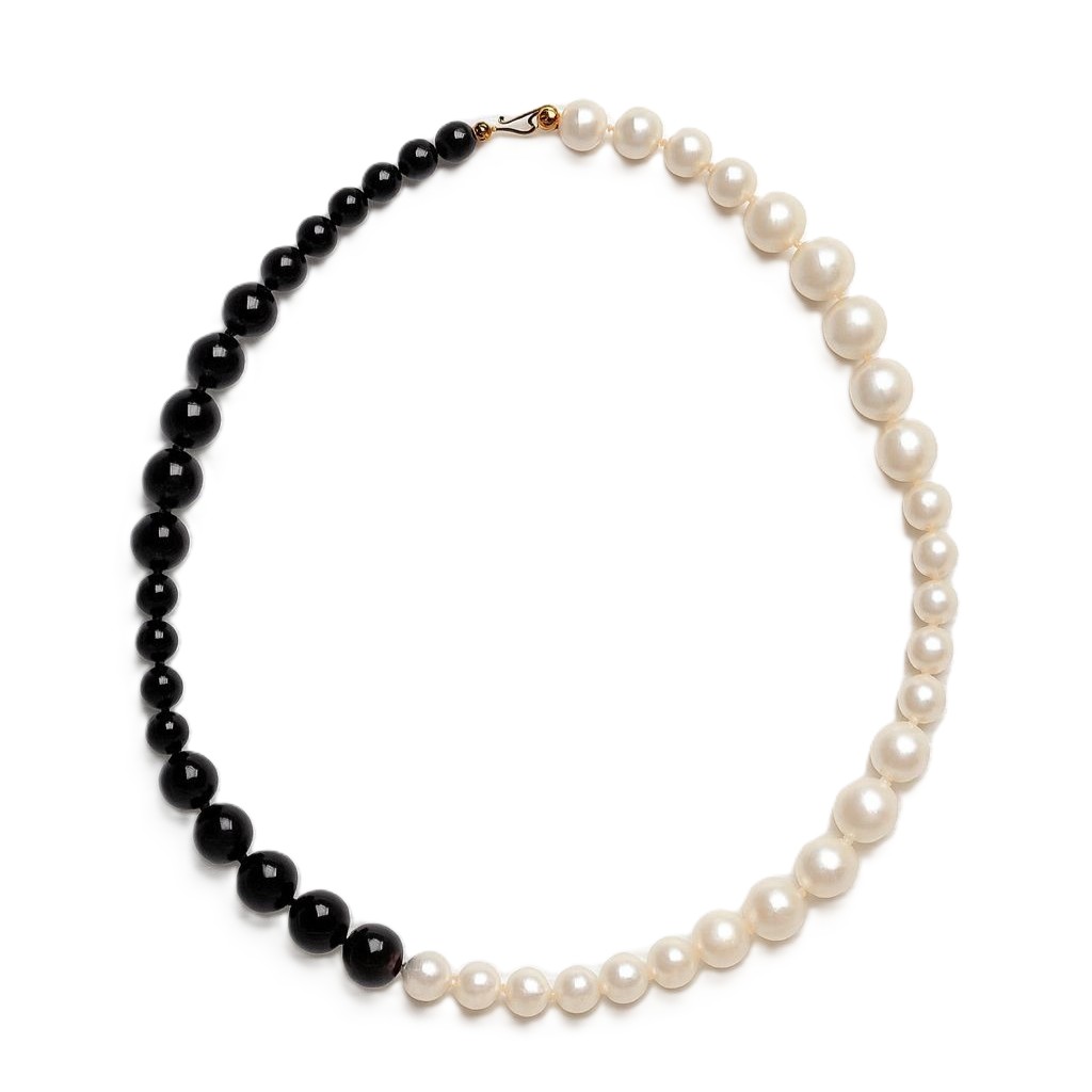Nossa Gargantilha P&B é toda feita em Ágata Negra e Pérolas naturais com fecho em ouro 18k.