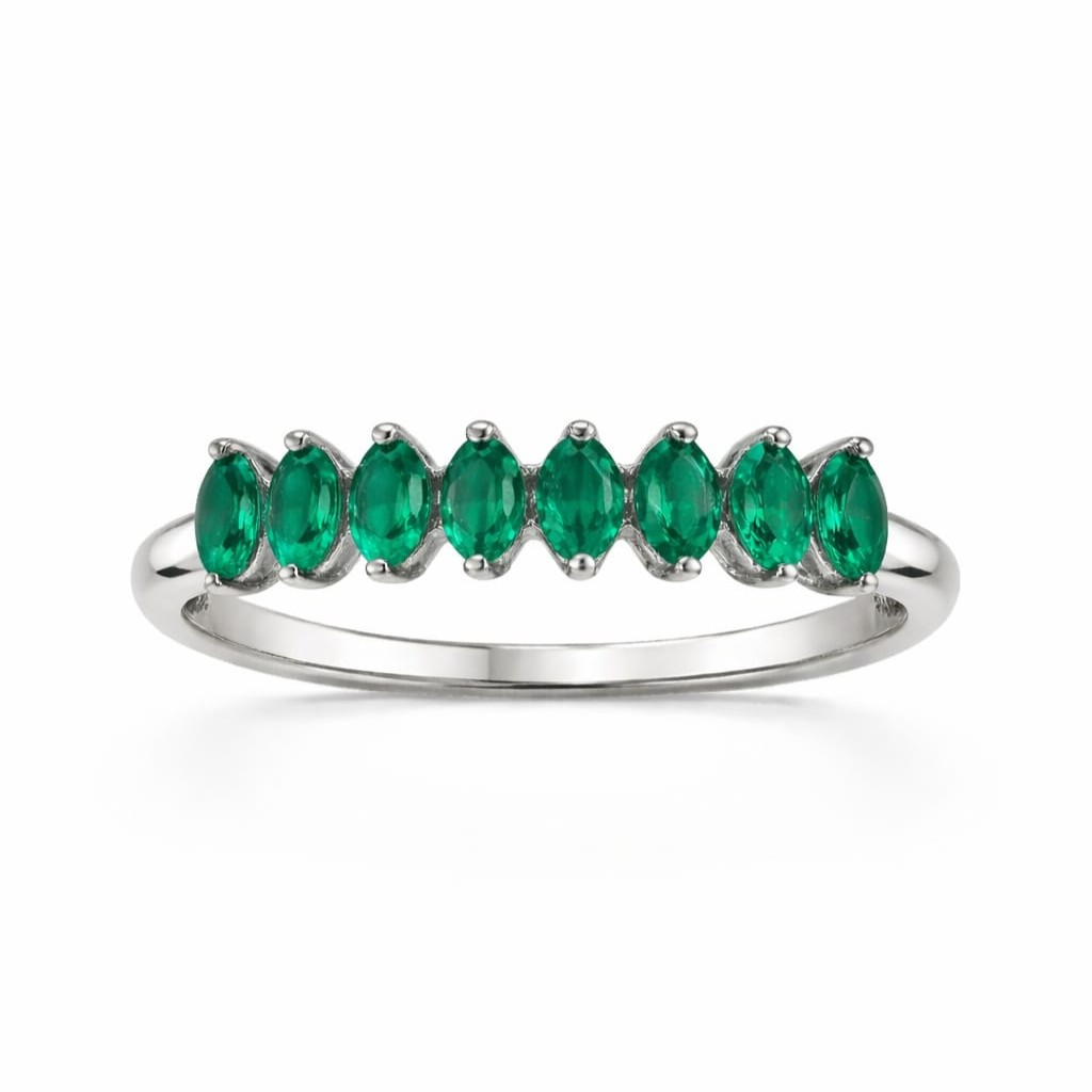 Meia Aliança Navetes Esmeralda Maleável