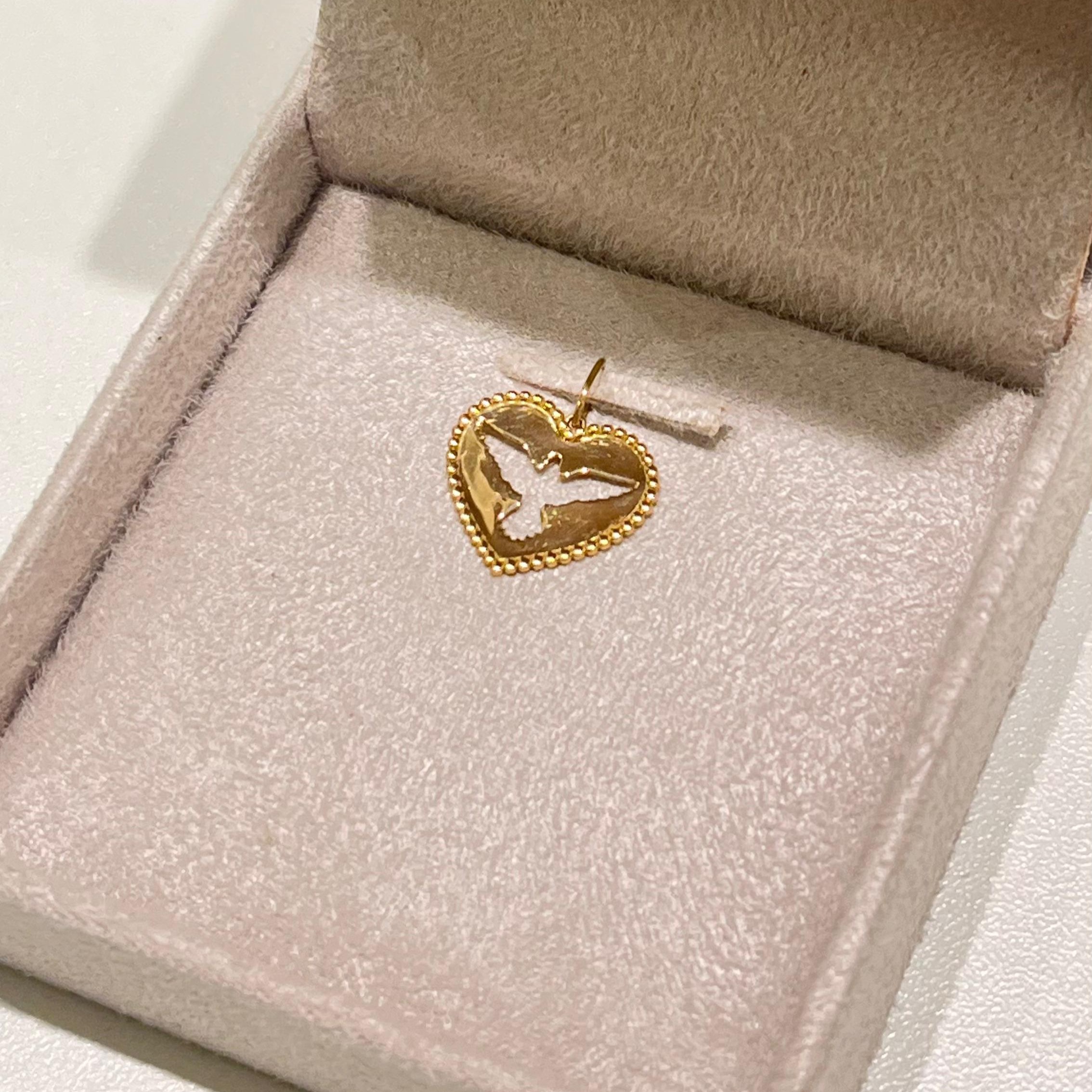 Nosso Pingente Espírito Santo Coração é todo feito em Ouro 18k.